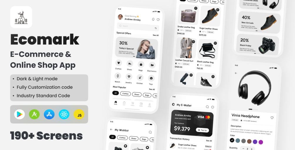 Ecomark is a powerful and versatile E-commerce React Native Expo Ui Kit designed to help developers and business owners create stunning and functional online stores. Built using the latest technologies and best practices, Ecomark provides a comprehensive solution for building e-commerce applications that are fast, reliable, and easy to use.