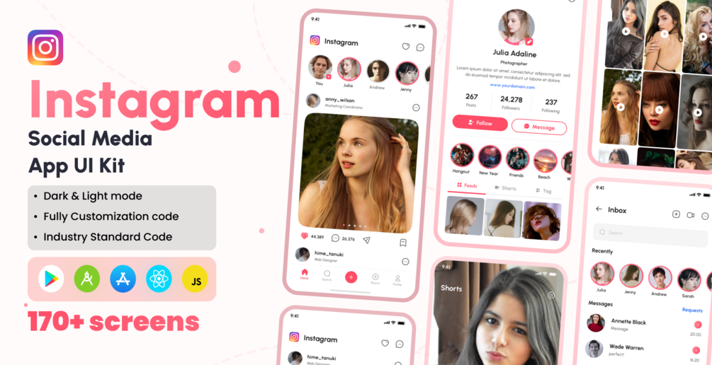 Featuring a modern and visually appealing design, Instagram-Social Media React Native CLI UI Kit provides a comprehensive set of pre-built components and screens that replicate the core functionalities of Instagram. From customizable profiles and interactive story features to engaging image galleries and seamless messaging interfaces, this UI kit offers everything you need to create an immersive social media experience for your users.